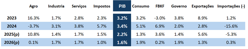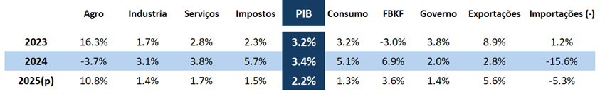 Tabela 1: Crescimento do PIB (% anual, componentes da oferta e da demanda, 2023-2025(p))