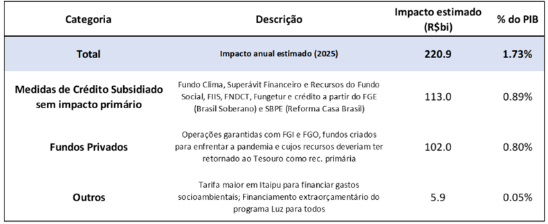 Tabela 2: Medidas extraorçamentárias com impacto sobre a demanda agregada (R$bi e % do PIB, 2025)