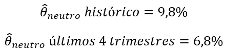Resultados do exercício proposto mostram que a média histórica do desemprego neutro no Brasil é de 9,8%. No entanto, registram-se mudanças relevantes ao longo do tempo e, na margem, o desemprego neutro está rodando em 6,8%.