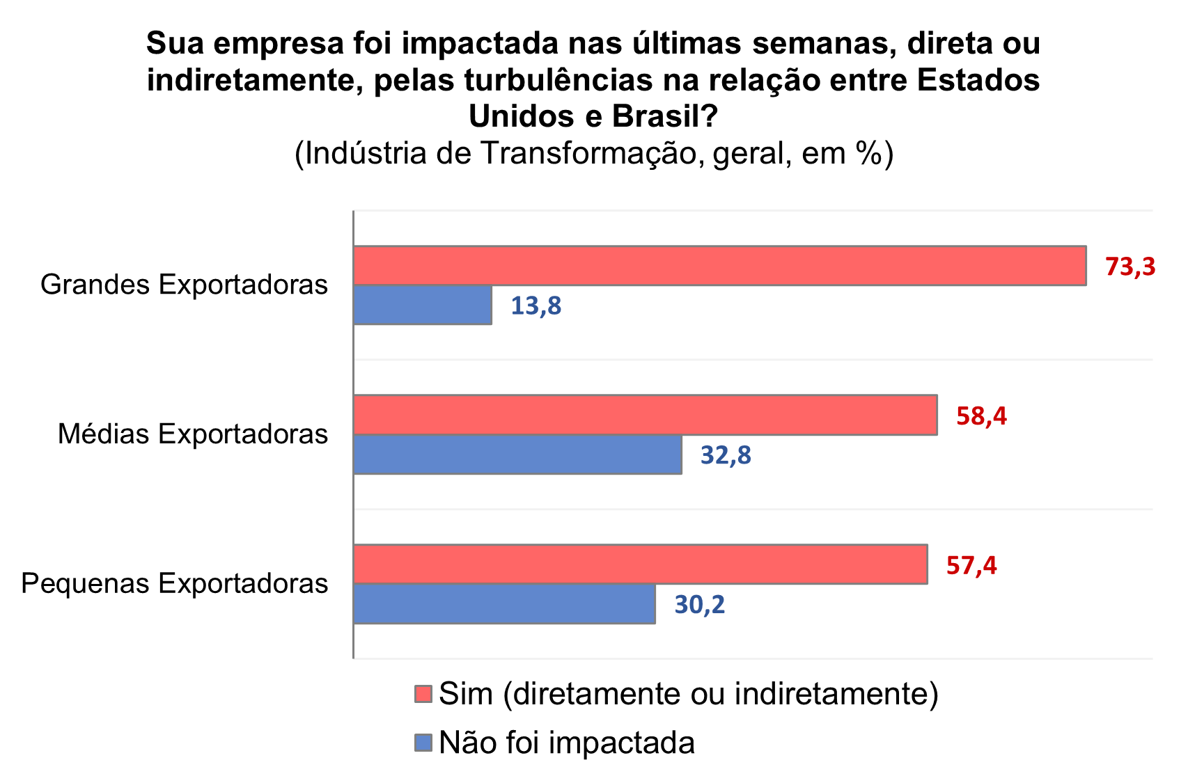 1- Sua empresa foi impactada nas últimas semanas, direta ou indiretamente, pelas turbulências na relação entre Estados Unidos e Brasil?