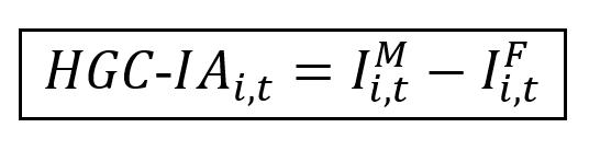- HGC"-" IA_(i,t)>0: predominância masculina relativa em IA (os homens estão proporcionalmente mais concentrados em IA do que as mulheres).