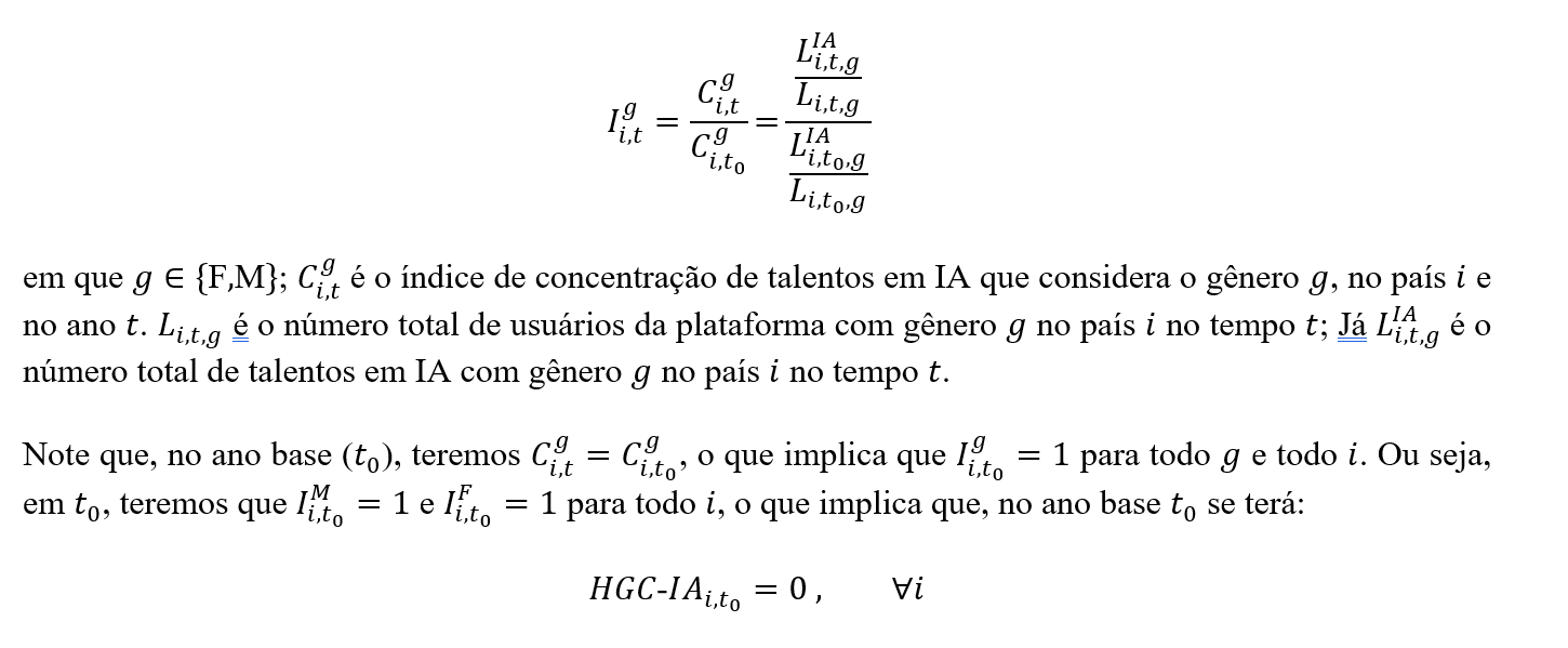 [2] Para uma definição mais formal do indicador temos: Para cada país i e ano t, definimos o Hiato de Gênero da Concentração em IA (HGC-IA) como: