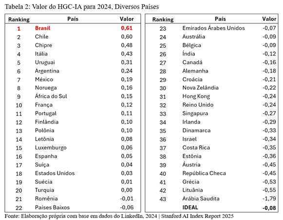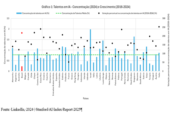 Fonte: Elaboração própria com base em dados do LinkedIn, 2024 | Stanford AI Index Report 2025
