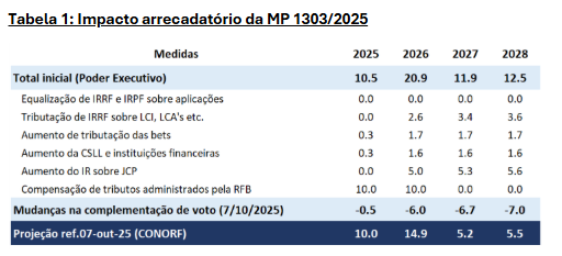 A MP 1303/2025 não foi aprovada. Na segunda reavaliação do orçamento de 2025, o governo constatou falta de recursos e passou a prever elevação do IOF para atingir a meta de primário. Sob desaprovação do Congresso e de setores da sociedade, a elevação de carga foi parcialmente revertida. Como compensação, foi apresentada a MP 1303/2025, que gerava um aumento da arrecadação. A Medida Provisória foi retirada de pauta e o texto “caducou”1.