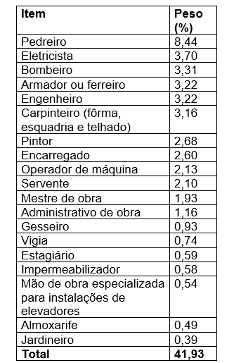 Tabela 2 – Estrutura de pesos do INCC por item do grupo Mão de obra