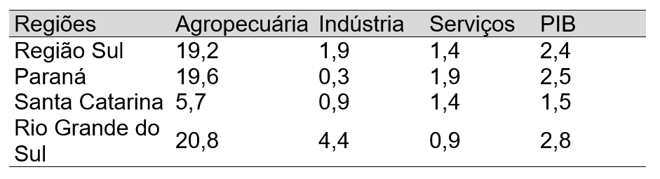 - O PIB gaúcho foi o que mais cresceu na região (1,6%), seguido do catarinense (0,5%) e do paranaense (0,1%).