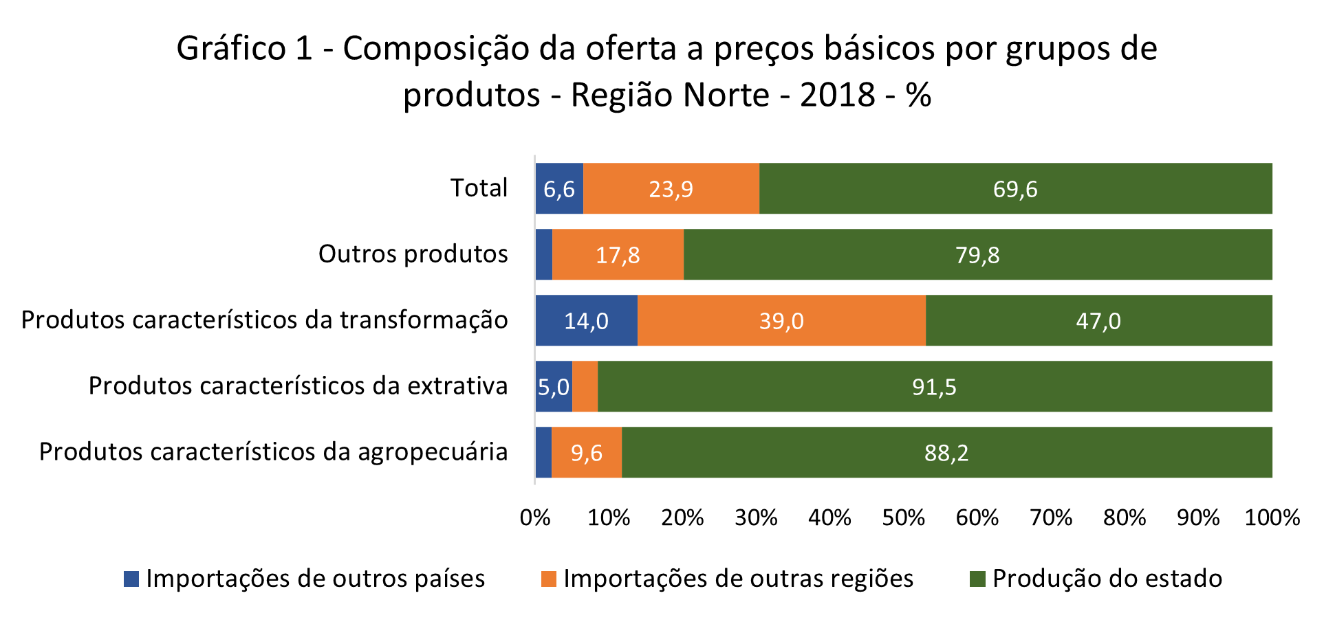 A Região Norte mostrou elevada dependência da importação de produtos característicos da transformação para compor sua oferta de produtos, principalmente originados em outras regiões do país. A exceção do Amazonas, que tem forte presença da indústria de transformação em sua estrutura econômica, todos os demais estados da região importaram mais de metade da oferta de produtos da transformação, o que indica, além de elevada dependência externa da região, sua pouca inserção na produção de produtos que tendem a apresentar maior valor agregado em comparação a média da economia.