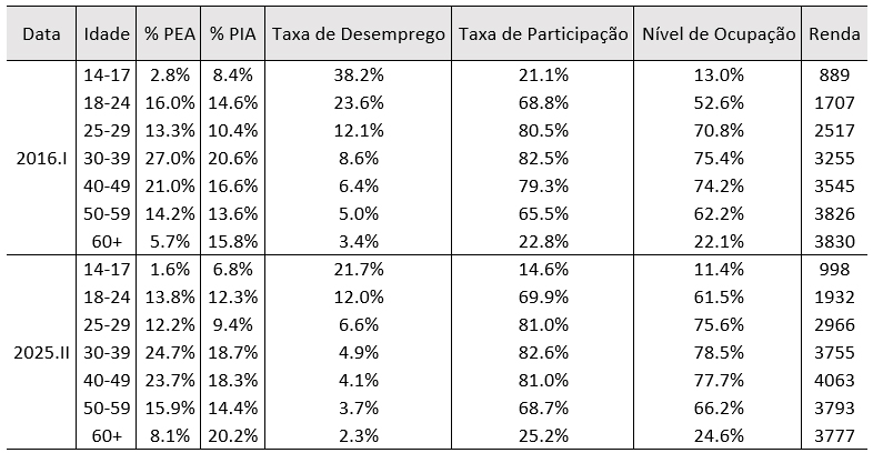Neste contexto, o objetivo deste estudo é avaliar os efeitos da melhora educacional e da transição demográfica sobre variáveis importantes do mercado de trabalho, como a taxa de desemprego, a taxa de participação, o nível de ocupação e o rendimento do trabalho. Essa análise visa contribuir para um maior entendimento sobre o “real grau” de aquecimento da economia.