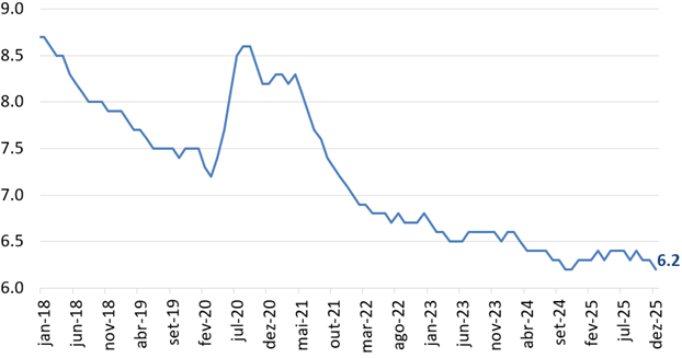 Ficar parado é diferente de ser passivo, como bem definiu a presidente do ECB, Christine Lagarde, ao final de 2025. Mais do que estática, a postura do ECB será de avaliação meticulosa dos dados, decidindo os próximos passos de reunião em reunião. Tal estratégia nos parece fazer sentido em um ambiente no qual houve sucesso da gestão monetária, mas que segue marcado por incerteza anormalmente elevada – tanto doméstica como externa. Mudanças bruscas não podem ser descartadas, e, com isso, a estratégia que se mostrou adequada até o momento pode precisar de ajustes.